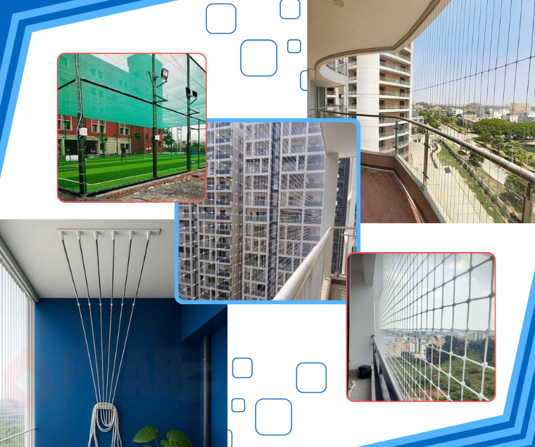 We are the skilled experts in fixing Safety nets for Balcony Safety Nets, Pigeon Safety Nets, Anti Bird Nets, Pigeon Nets for Balconies, Cricket Net Practice, Children Safety Nets, Construction Safety Nets, Duct Area Safety Nets, Building Safety Nets, Industrial Safety Nets, Swimming Pool Safety Nets Stairway Safety nets, Monkey Safety Nets, Terrace Top Nets, Glass Safety Nets, Car Parking Safety Nets, Coconut Tree Nets, All types of Safety Nets, HDPE Nets – Nylon Nets.